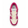 Combinação de Cores Vibrante: Apresenta um cabedal em couro de alta qualidade, combinando painéis de um Rosa (Pink) intenso e vibrante com subcamadas em um elegante Creme (Off-White/Sail). Essa combinação cria um contraste visual que é ao mesmo tempo ousado e sofisticado.